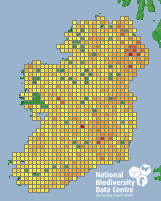 Distribution of the number of records recorded within each 10km grid square (ITM).Marine Map - 50km