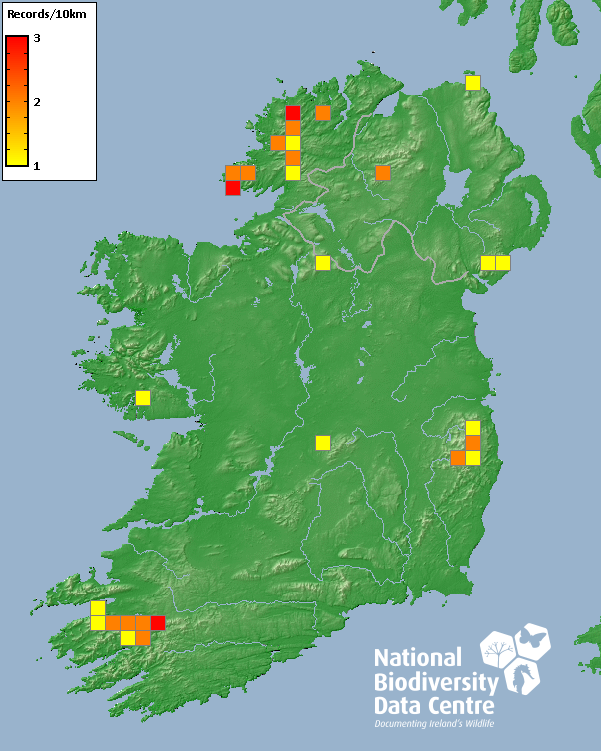 Distribution of the number of records recorded within each 10km grid square (ITM).Marine Map - 50km