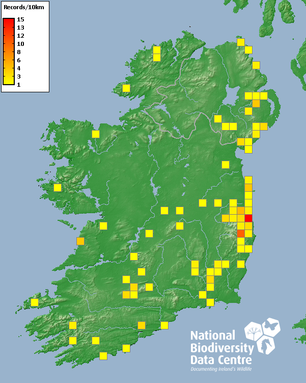 Distribution of the number of records recorded within each 10km grid square (ITM).Marine Map - 50km