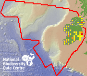 Distribution of the number of records recorded within each 10km grid square (ITM).Marine Map - 50km