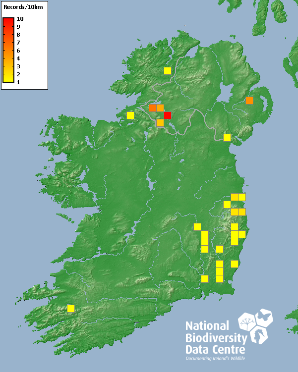 Distribution of the number of records recorded within each 10km grid square (ITM).Marine Map - 50km