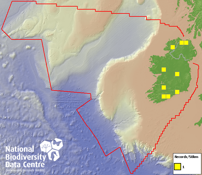 Distribution of the number of records recorded within each 10km grid square (ITM).Marine Map - 50km
