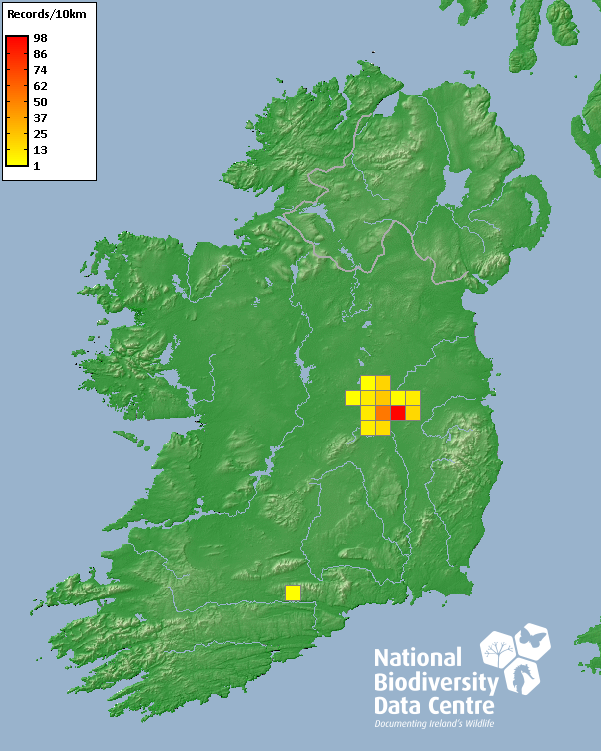 Distribution of the number of records recorded within each 10km grid square (ITM).Marine Map - 50km