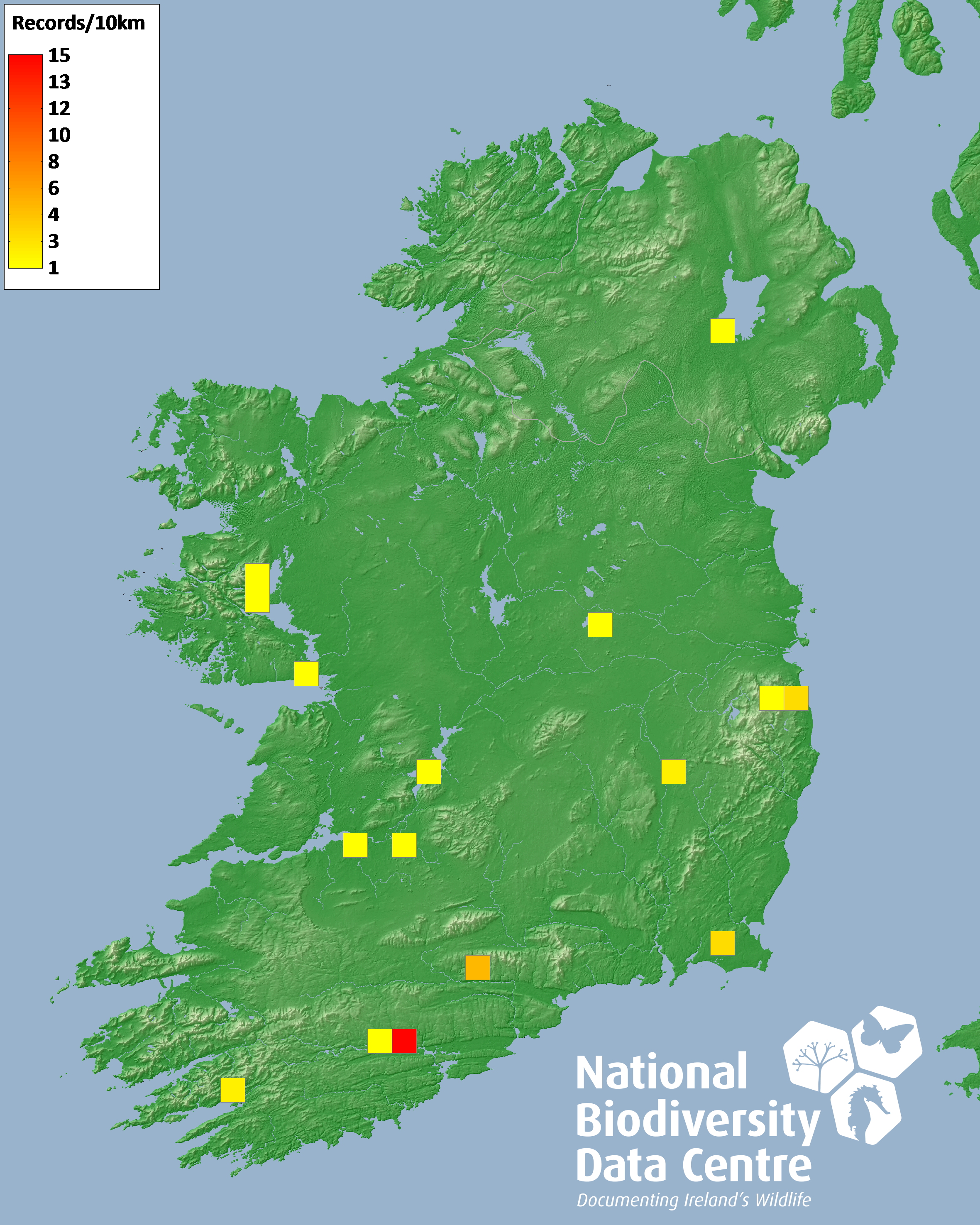 Distribution of the number of records recorded within each 10km grid square (ITM).Marine Map - 50km