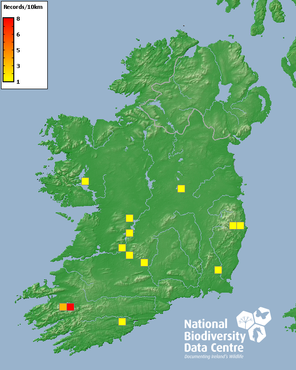 Distribution of the number of records recorded within each 10km grid square (ITM).Marine Map - 50km