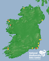 Distribution of the number of records recorded within each 10km grid square (ITM).Marine Map - 50km