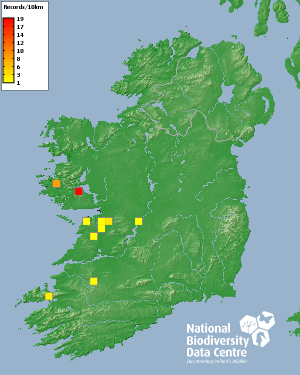 Distribution of the number of records recorded within each 10km grid square (ITM).Marine Map - 50km