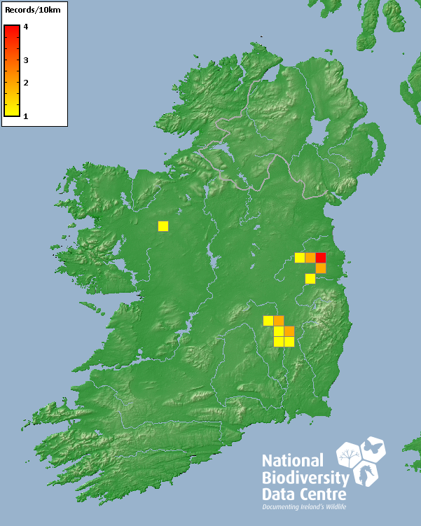 Distribution of the number of records recorded within each 10km grid square (ITM).Marine Map - 50km