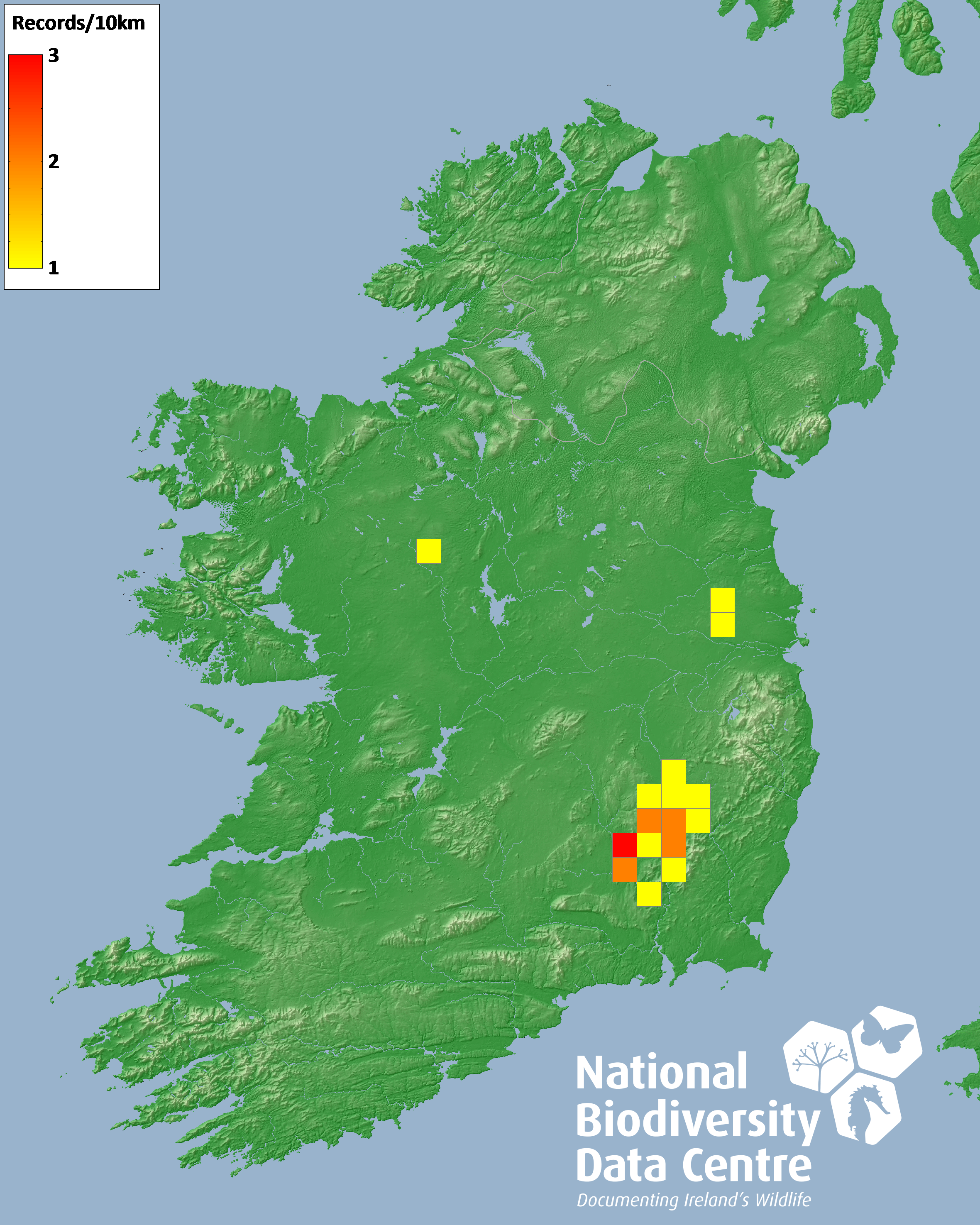 Distribution of the number of records recorded within each 10km grid square (ITM).Marine Map - 50km