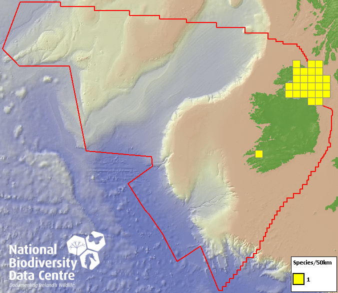Distribution of the number of records within each 10km grid square (ITM).Marine Map - 50Km