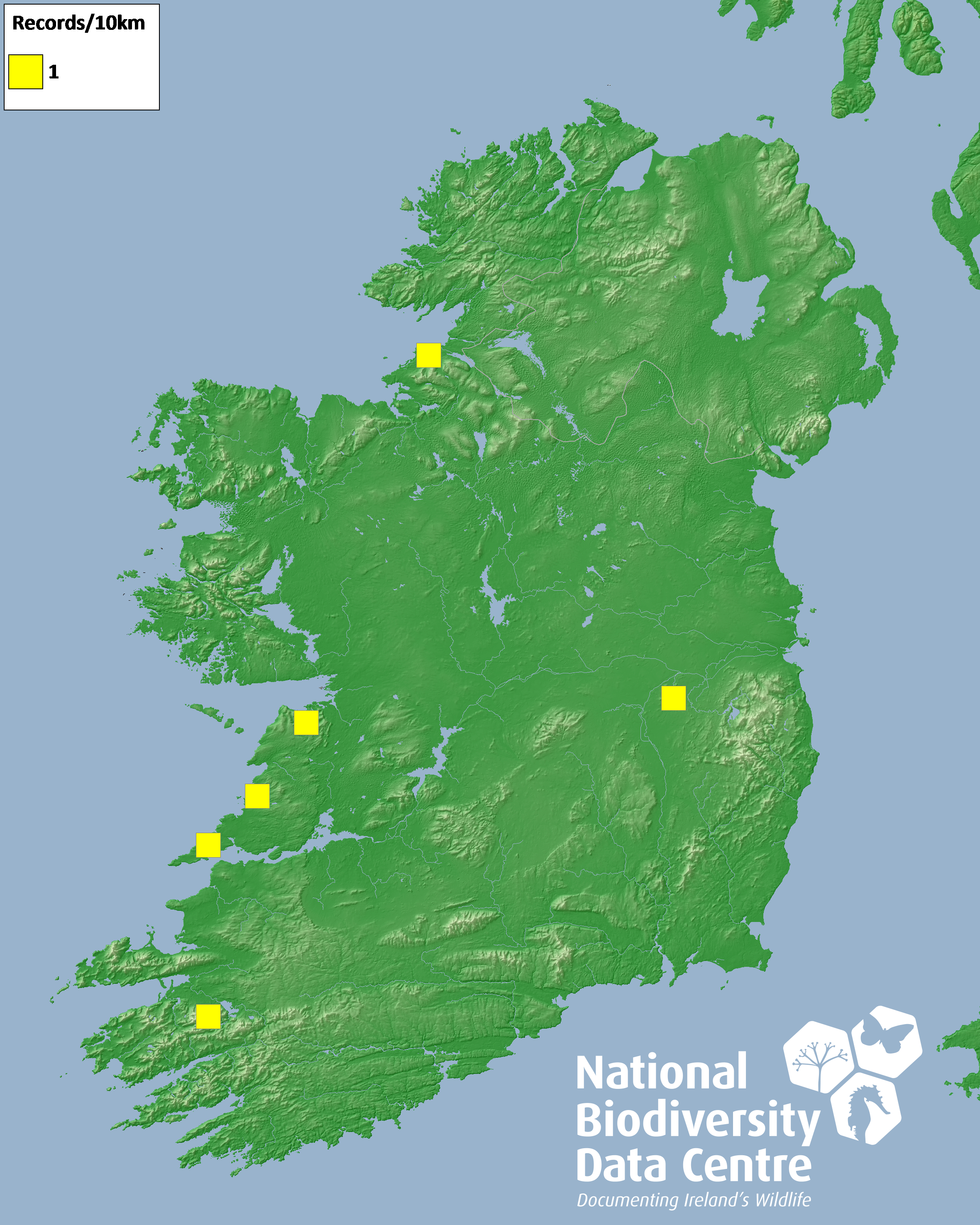Distribution of the number of records recorded within each 10km grid square (ITM).Marine Map - 50km