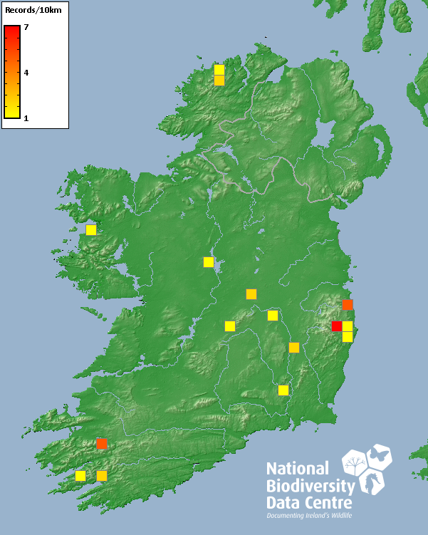 Distribution of the number of records recorded within each 10km grid square (ITM).Marine Map - 50km