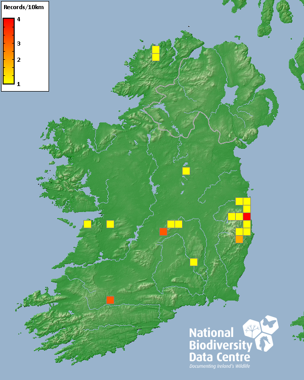 Distribution of the number of records recorded within each 10km grid square (ITM).Marine Map - 50km