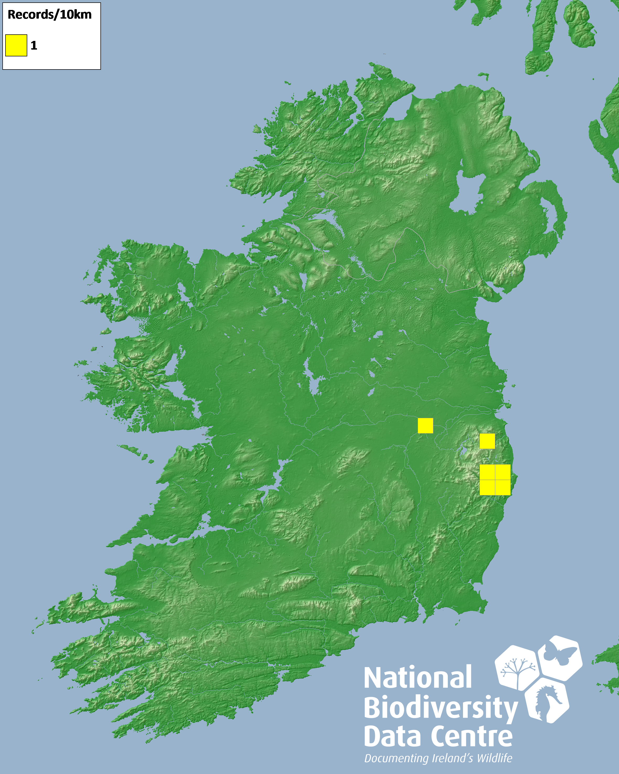 Distribution of the number of records recorded within each 10km grid square (ITM).Marine Map - 50km