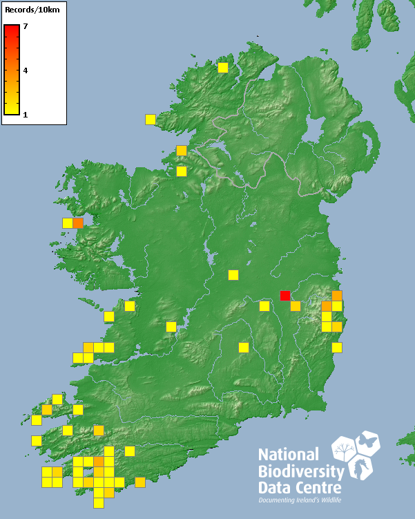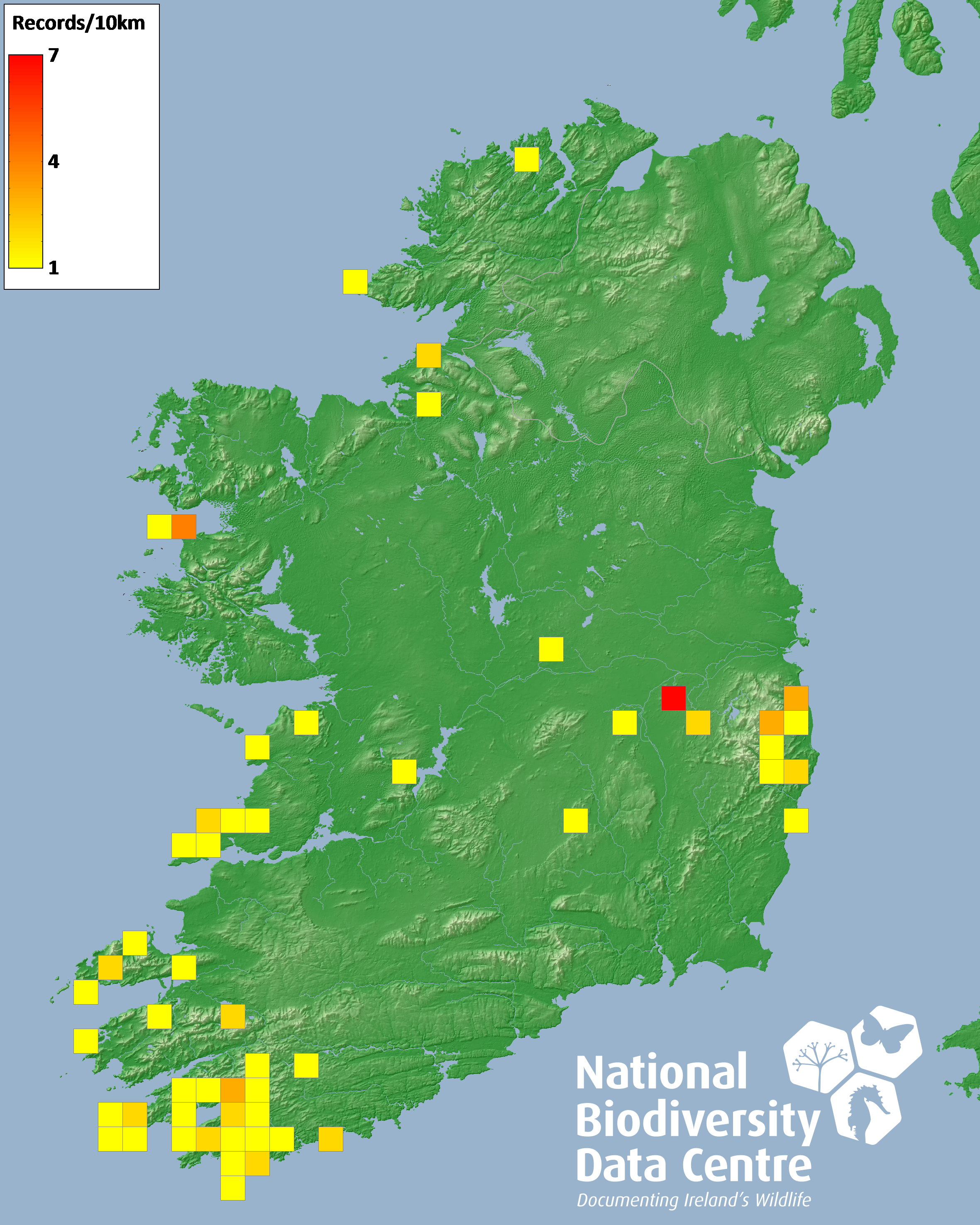Distribution of the number of records recorded within each 10km grid square (ITM).Marine Map - 50km