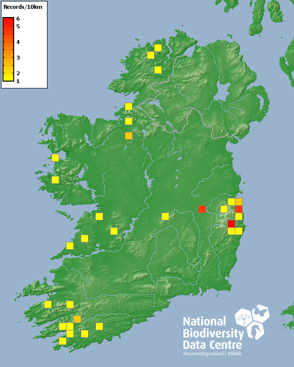 Distribution of the number of records recorded within each 10km grid square (ITM).Marine Map - 50km