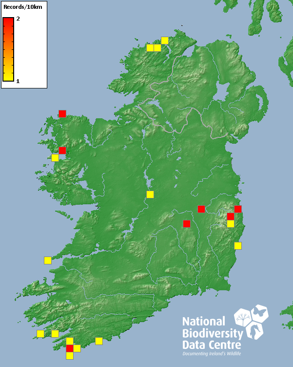 Distribution of the number of records recorded within each 10km grid square (ITM).Marine Map - 50km