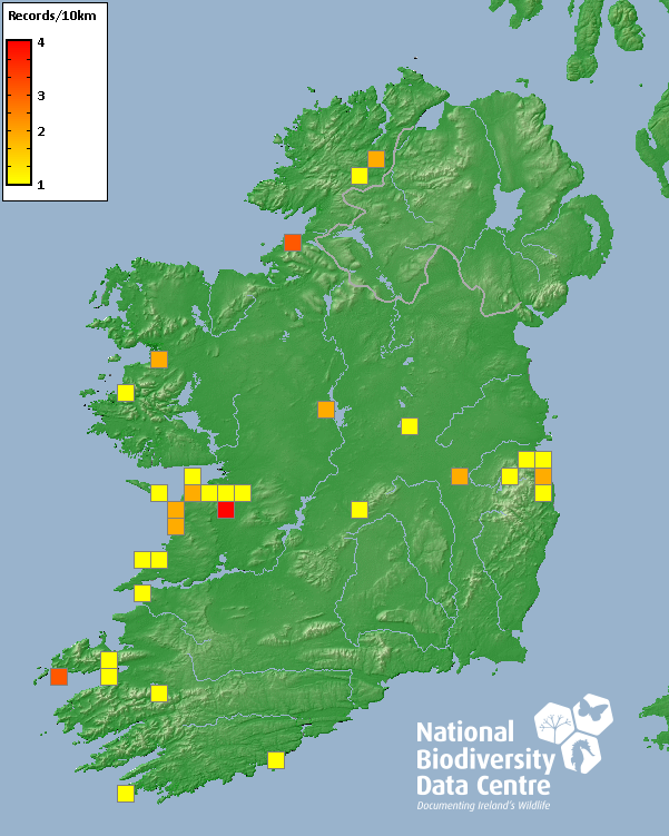 Distribution of the number of records recorded within each 10km grid square (ITM).Marine Map - 50km