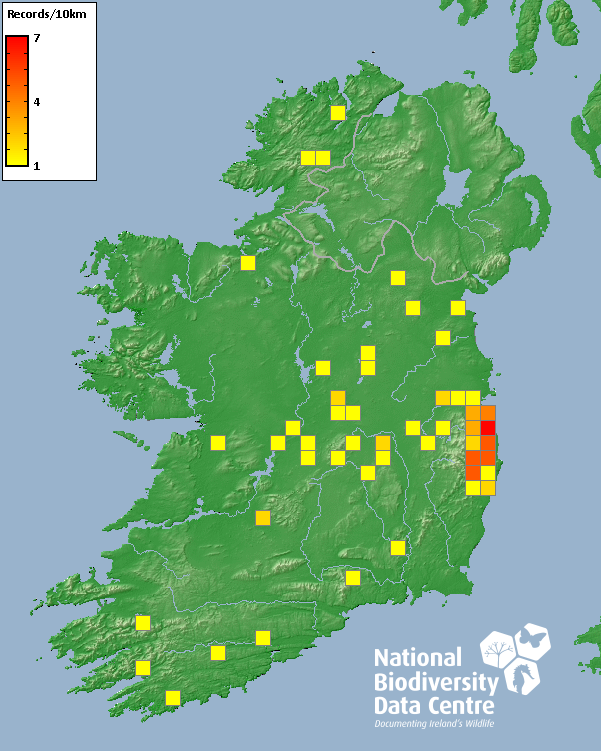 Distribution of the number of records recorded within each 10km grid square (ITM).Marine Map - 50km