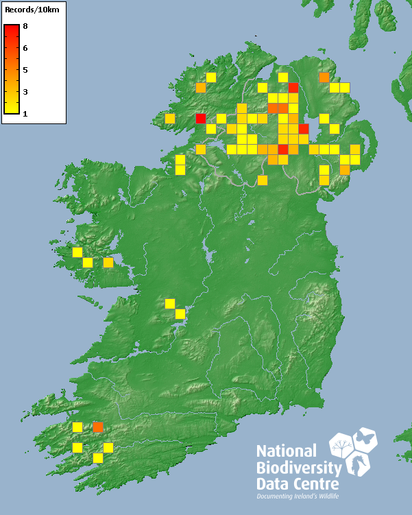 Distribution of the number of records recorded within each 10km grid square (ITM).Marine Map - 50km