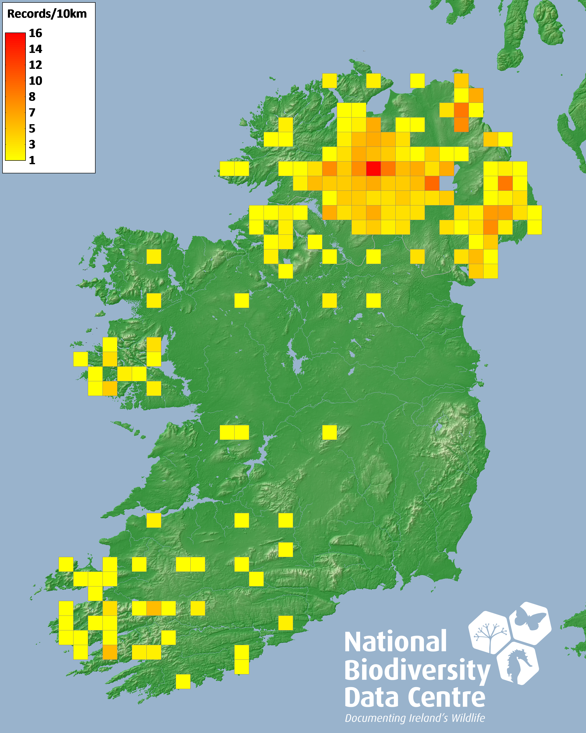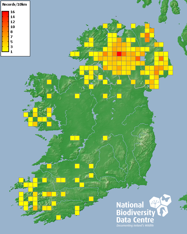 Distribution of the number of records recorded within each 10km grid square (ITM).Marine Map - 50km