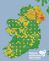 Distribution of the number of records recorded within each 10km grid square (ITM).Marine Map - 50km