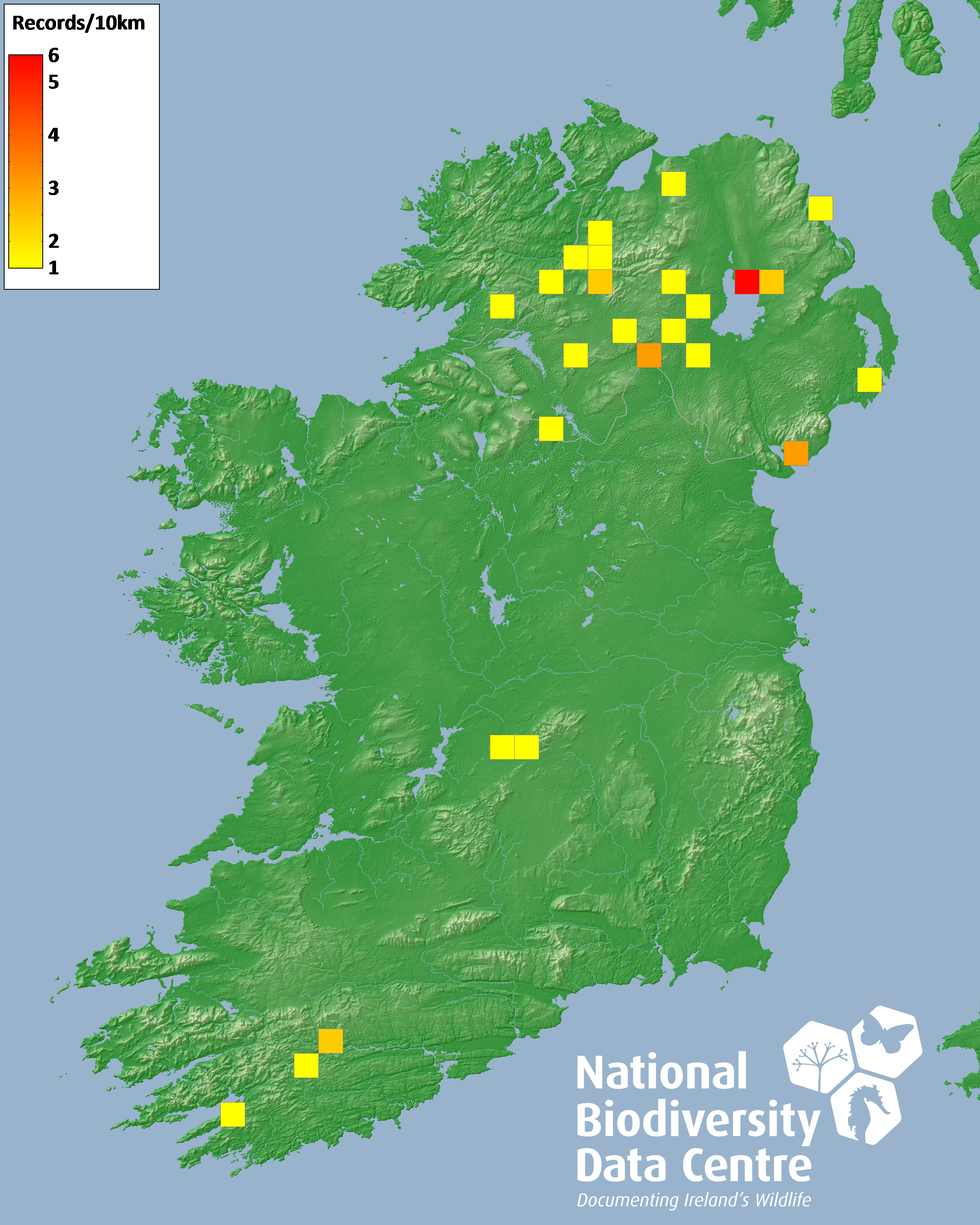 Distribution of the number of records recorded within each 10km grid square (ITM).Marine Map - 50km