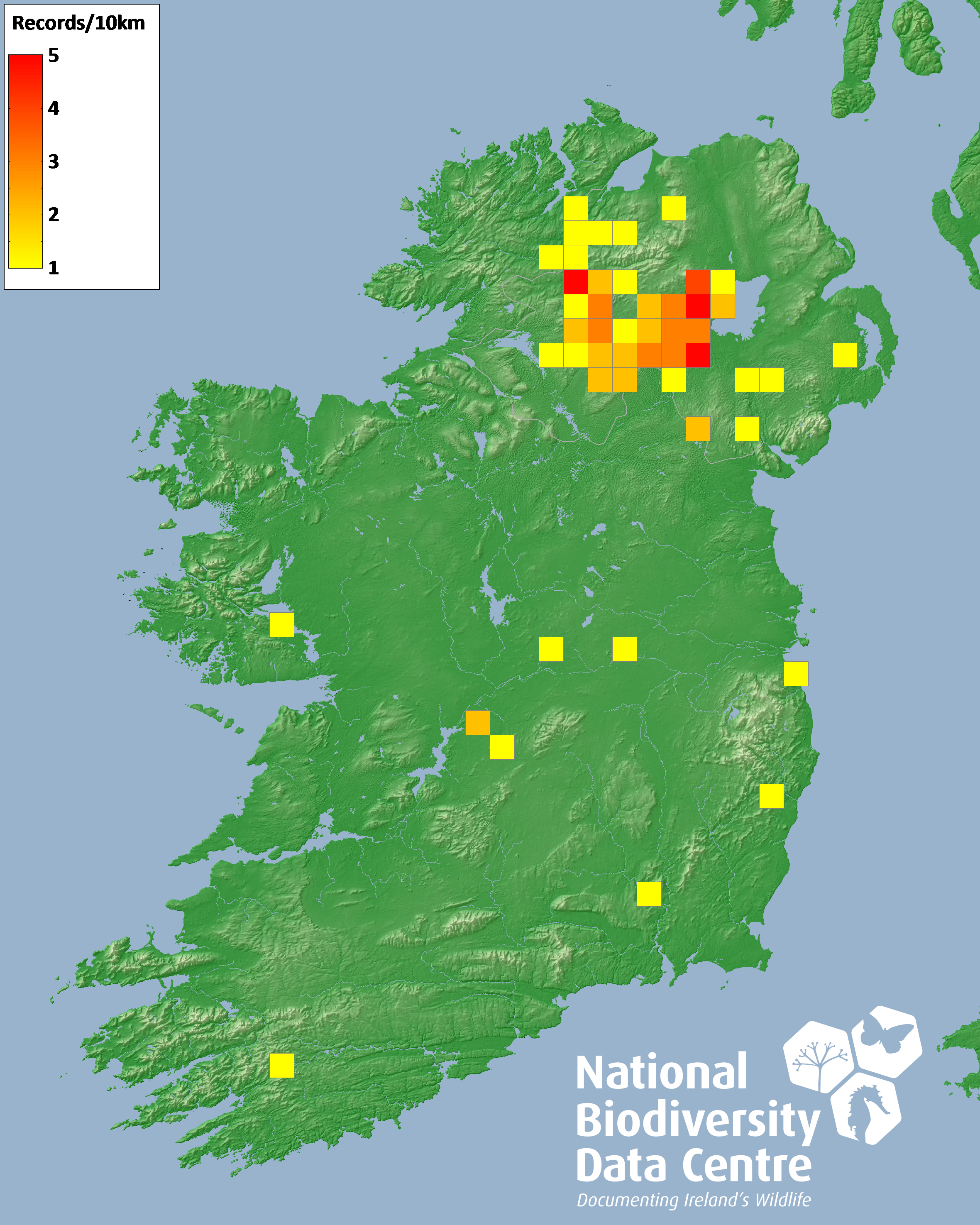 Distribution of the number of records recorded within each 10km grid square (ITM).Marine Map - 50km