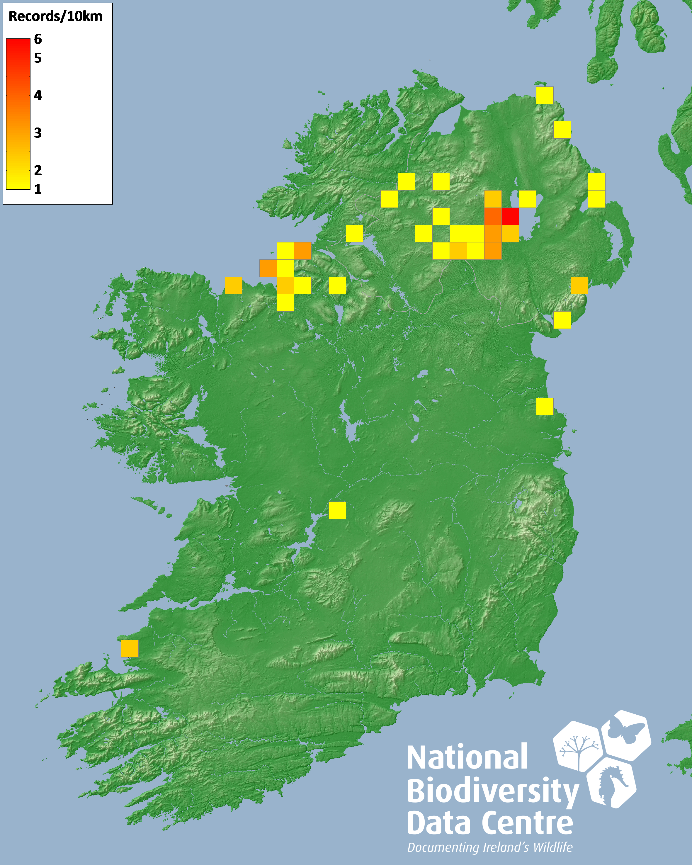 Distribution of the number of records recorded within each 10km grid square (ITM).Marine Map - 50km