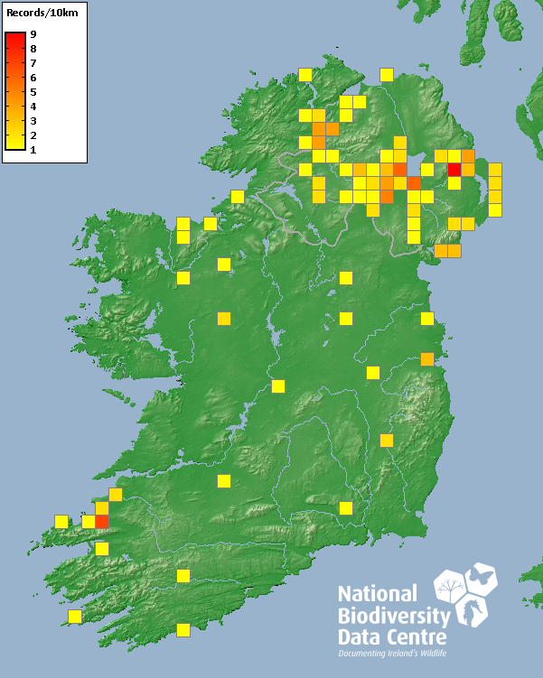 Distribution of the number of records recorded within each 10km grid square (ITM).Marine Map - 50km