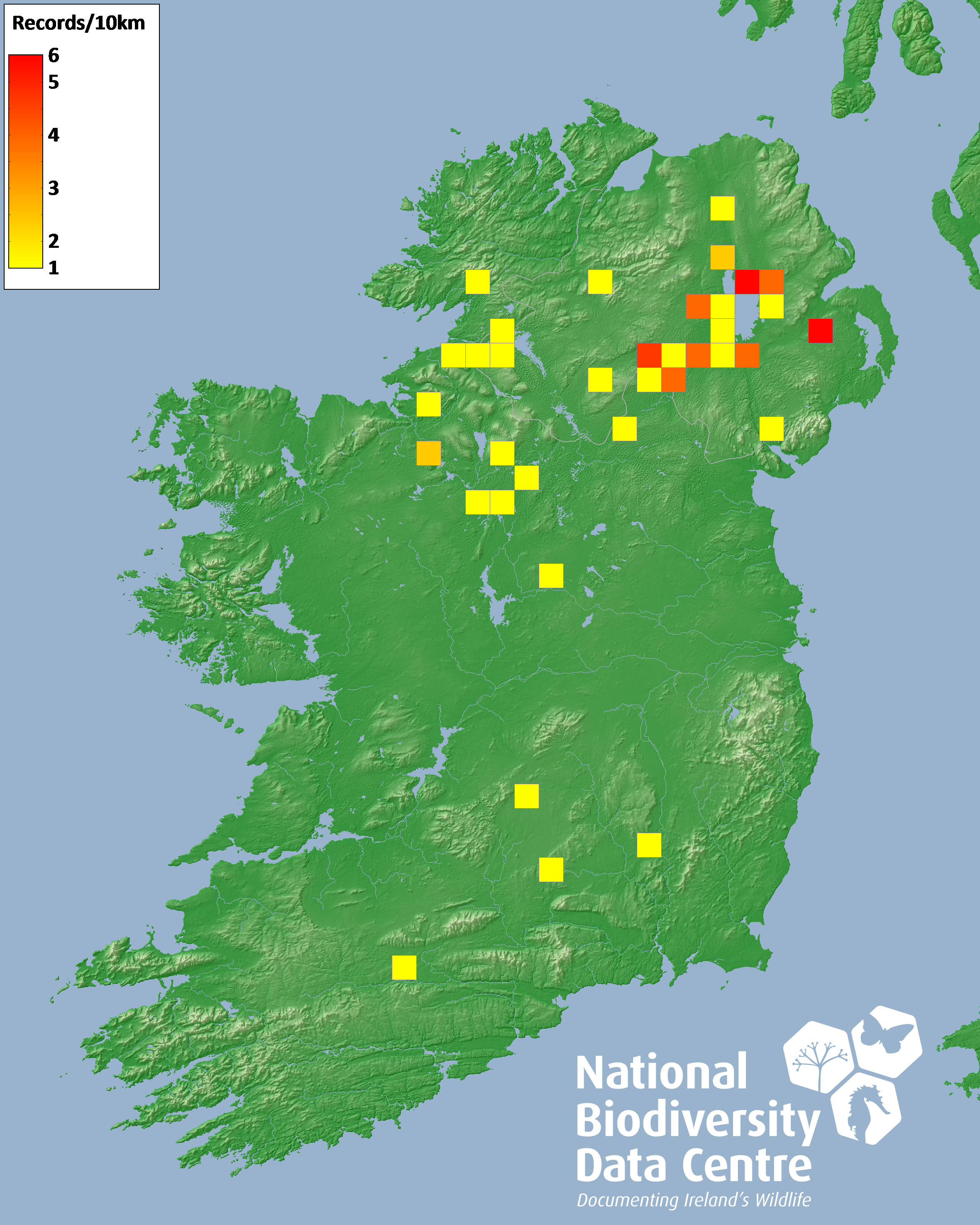 Distribution of the number of records recorded within each 10km grid square (ITM).Marine Map - 50km