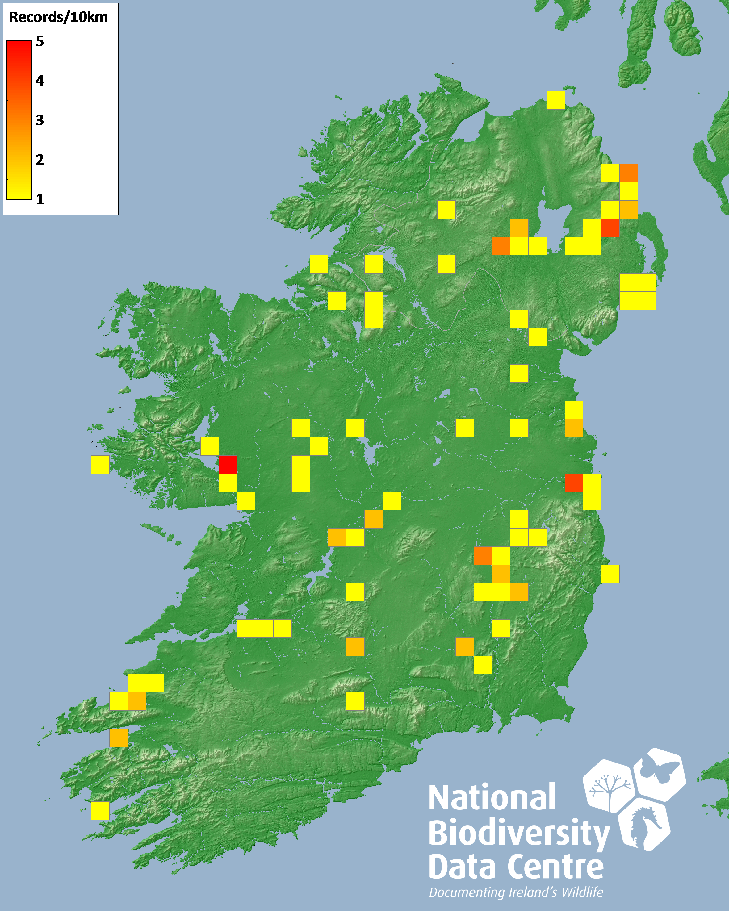 Distribution of the number of records recorded within each 10km grid square (ITM).Marine Map - 50km