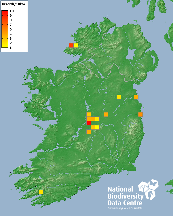 Distribution of the number of records recorded within each 10km grid square (ITM).Marine Map - 50km