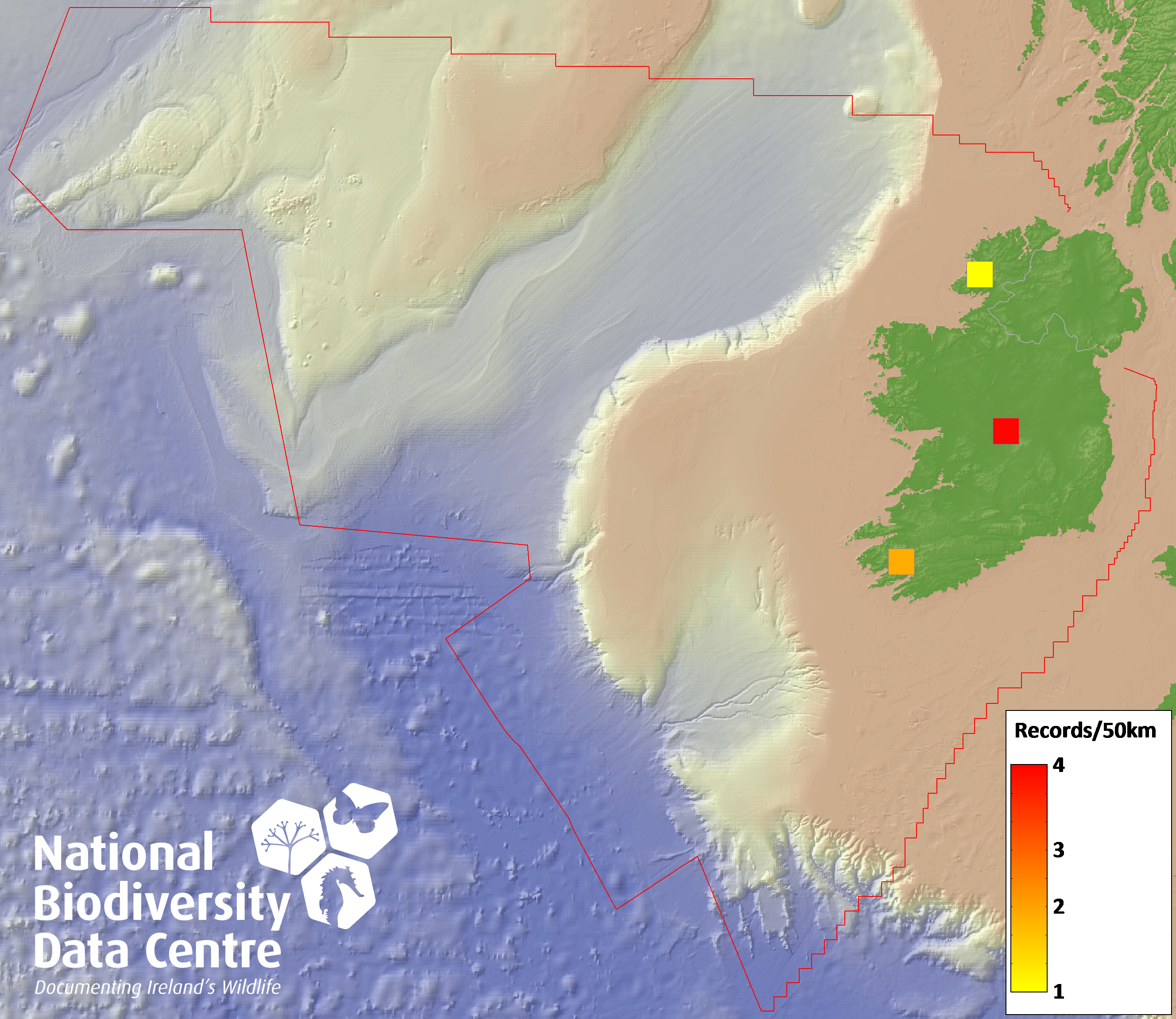 Distribution of the number of records recorded within each 10km grid square (ITM).Marine Map - 50km
