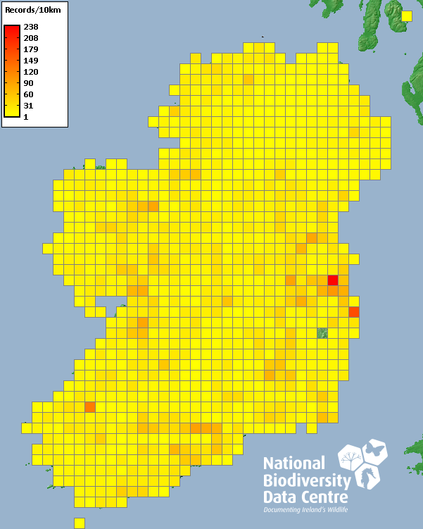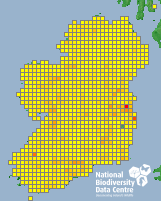 Distribution of the number of records recorded within each 10km grid square (ITM).Marine Map - 50km