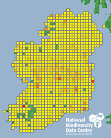 Distribution of the number of records recorded within each 10km grid square (ITM).Marine Map - 50km