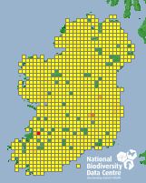 Distribution of the number of records recorded within each 10km grid square (ITM).Marine Map - 50km