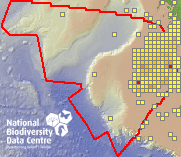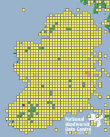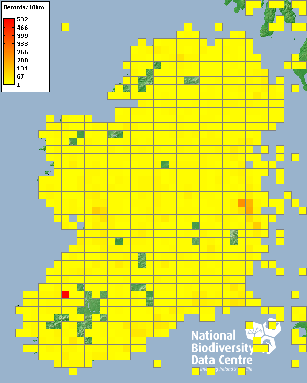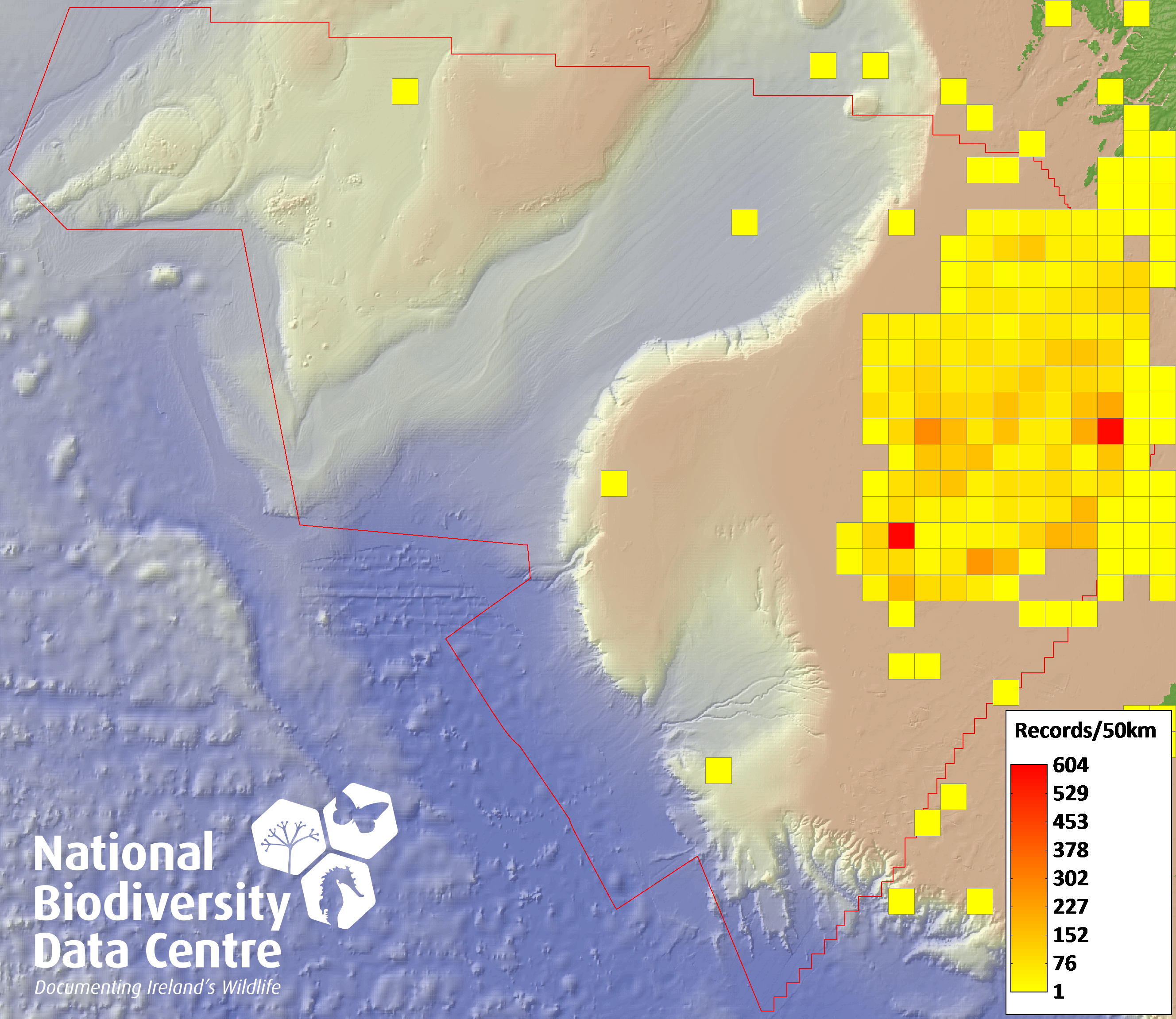 Distribution of the number of records recorded within each 10km grid square (ITM).Marine Map - 50km