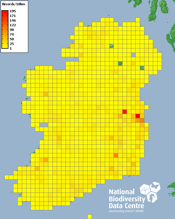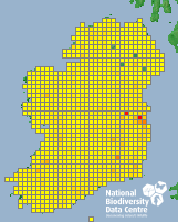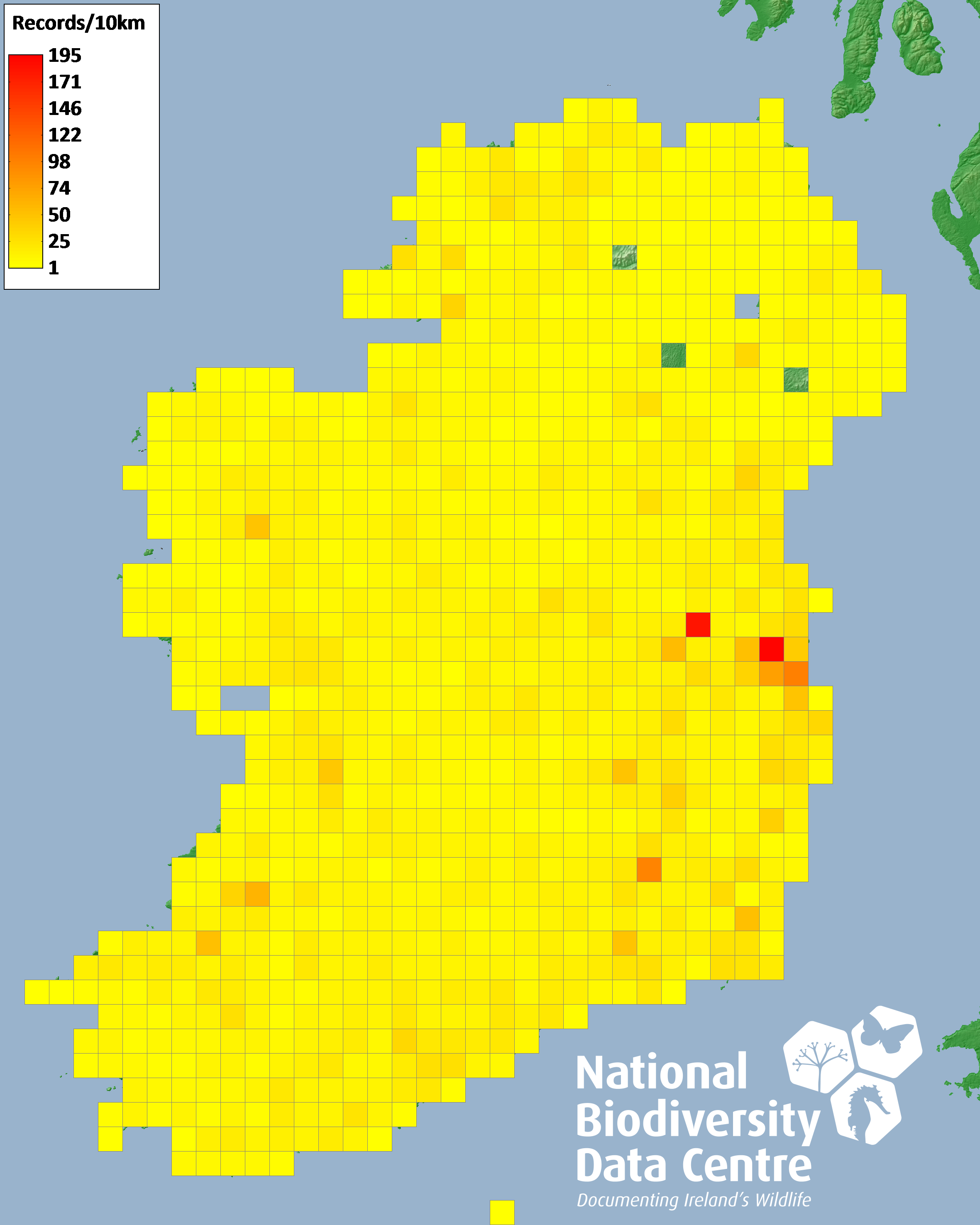 Distribution of the number of records recorded within each 10km grid square (ITM).Marine Map - 50km