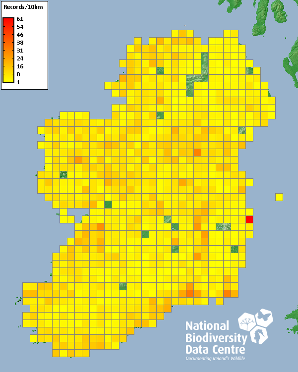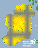 Distribution of the number of records recorded within each 10km grid square (ITM).Marine Map - 50km