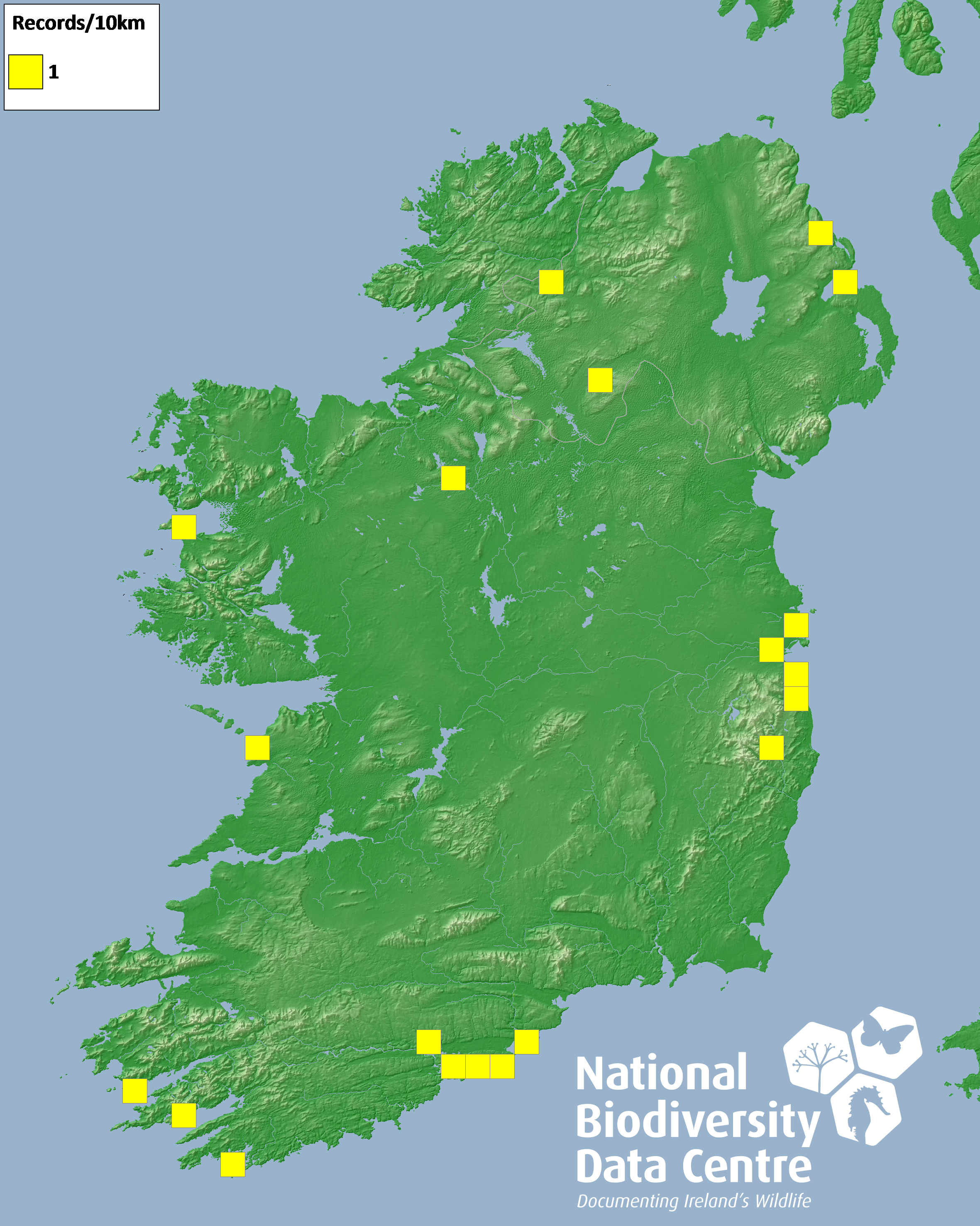 Distribution of the number of records recorded within each 10km grid square (ITM).Marine Map - 50km