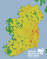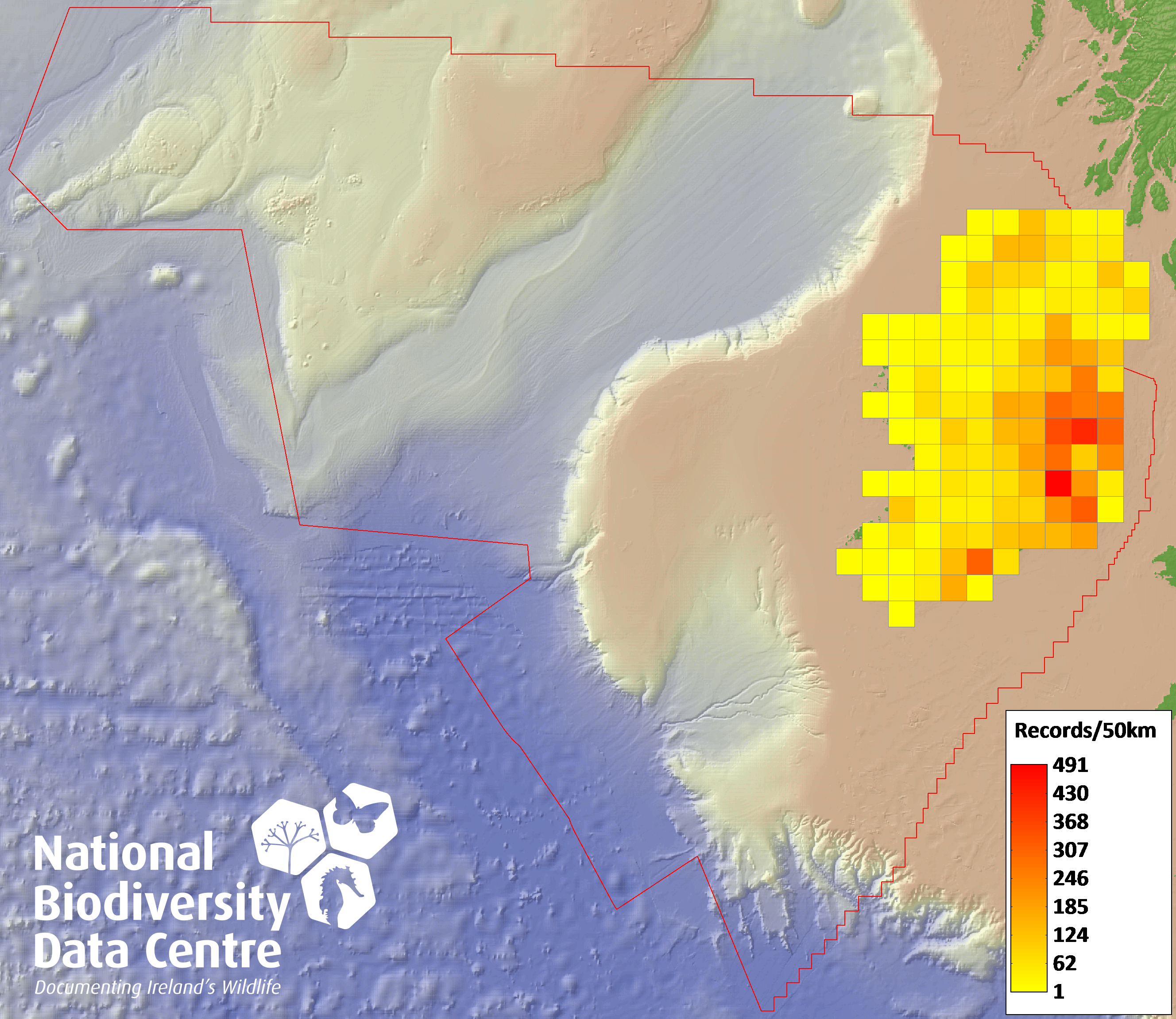 Distribution of the number of records recorded within each 10km grid square (ITM).Marine Map - 50km