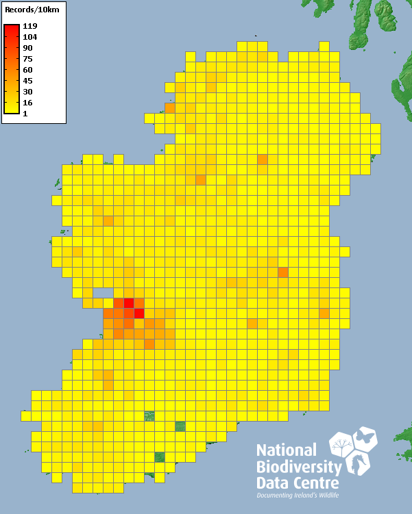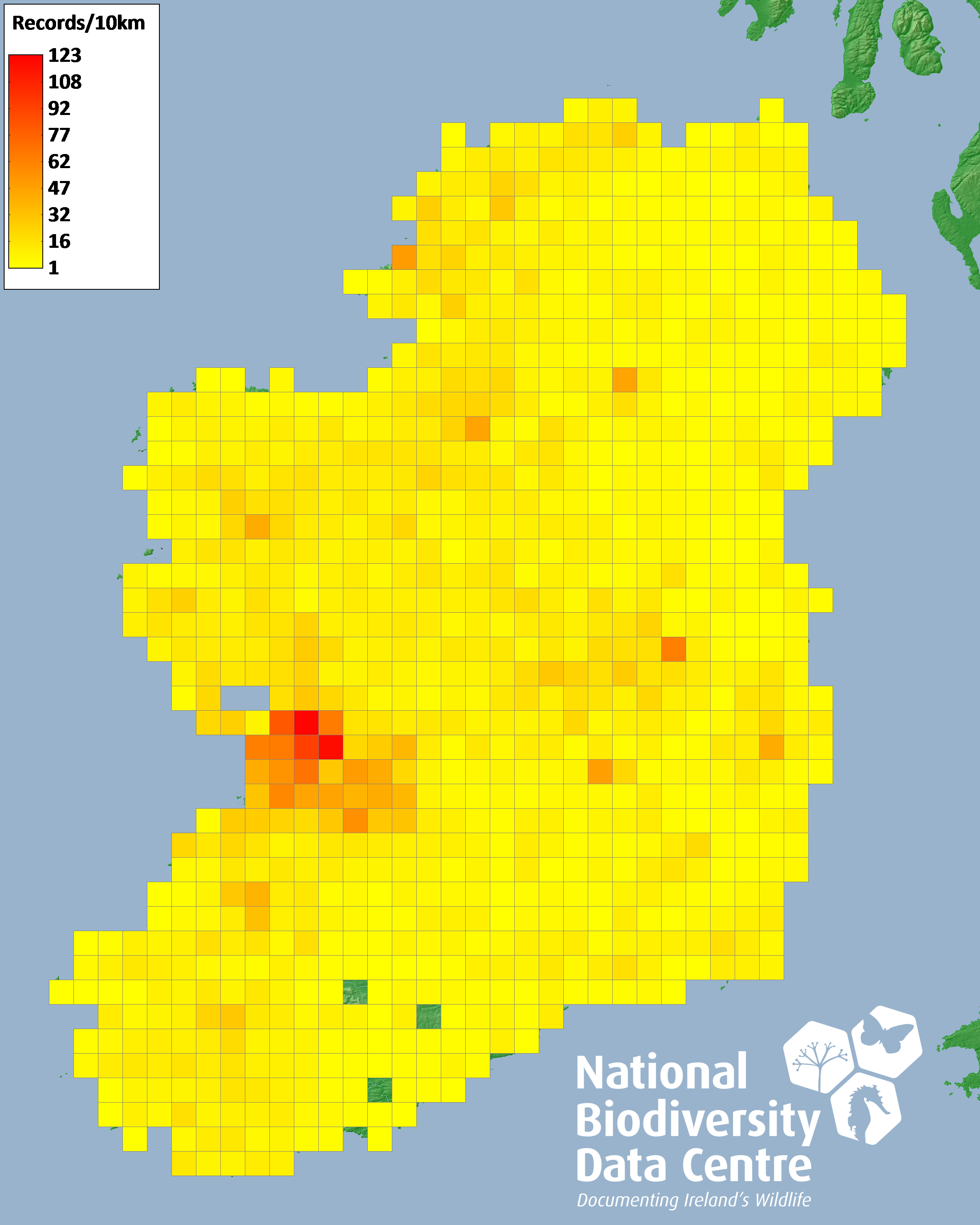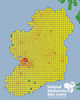 Distribution of the number of records recorded within each 10km grid square (ITM).Marine Map - 50km