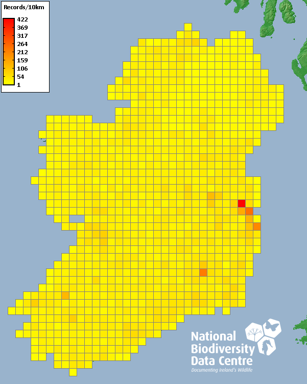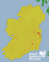 Distribution of the number of records recorded within each 10km grid square (ITM).Marine Map - 50km