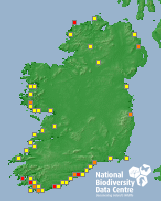 Distribution of the number of records recorded within each 10km grid square (ITM).Marine Map - 50km