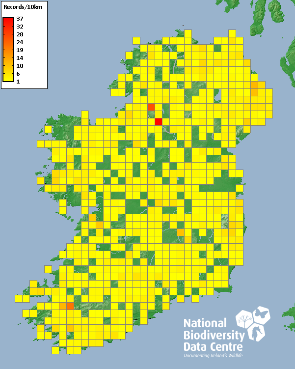 Distribution of the number of records recorded within each 10km grid square (ITM).Marine Map - 50km