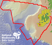 Distribution of the number of records recorded within each 10km grid square (ITM).Marine Map - 50km