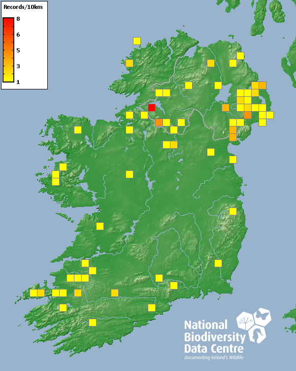 Distribution of the number of records recorded within each 10km grid square (ITM).Marine Map - 50km
