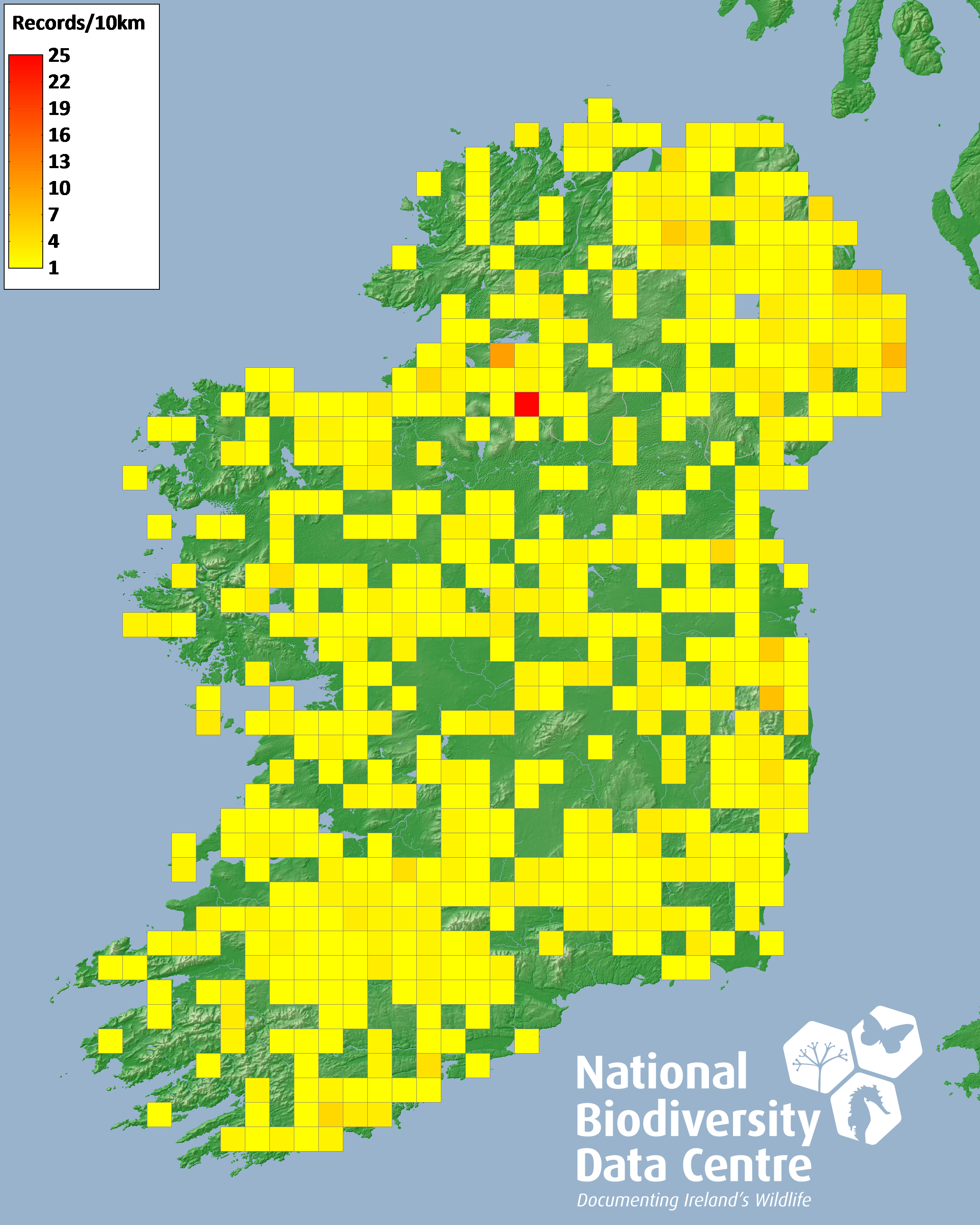 Distribution of the number of records recorded within each 10km grid square (ITM).Marine Map - 50km