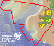 Distribution of the number of records recorded within each 10km grid square (ITM).Marine Map - 50km